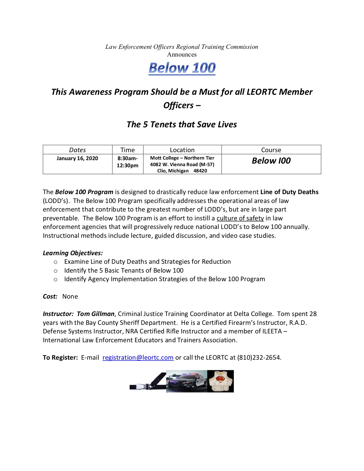 Tommy Loftis currently serves at the Law Enforcement Coordinator for the United States Attorney’s Office in the Southern District of Alabama. He served as a police officer, narcotics investigator, and Chief of Police in his 13 years of law enforcement service. Since April of 2012 when he was afforded the opportunity to attend a train the trainer course for Below 100 he has presented this information to more than 70 law enforcement groups from Alabama to Arizona. His goal is to reach each and every department in his home state of Alabama.