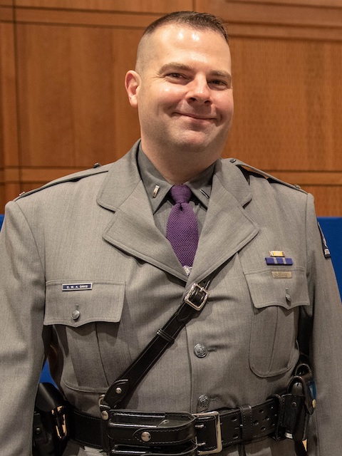 Lieutenant Collin Davis has been a member of the New York State Police since 2005 and has served in Troops D, F, G and H. He currently serves as the Assistant Zone Commander of Zone 1, Troop D, in Marcy, New York. While serving as a Trooper in Troop F, he was recognized by Mid-Hudson Stop DWI as Greene County’s “Top Cop” for 2008, 2009, 2010 and 2011. Lieutenant Davis is a 2012 recipient of the NYSP Superintendent’s Commendation Award for his actions during a critical incident stemming from a domestic dispute. He was a member of the NYSP Collision Reconstruction Unit from 2009 to 2018 and has trained thousands of recruits of the NYSP Basic School in Collision Investigations. He is also a member of the New York Statewide Traffic Accident Reconstruction Society (NYSTARS).