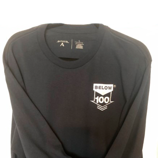 - Embroidered Below 100 logo on left side